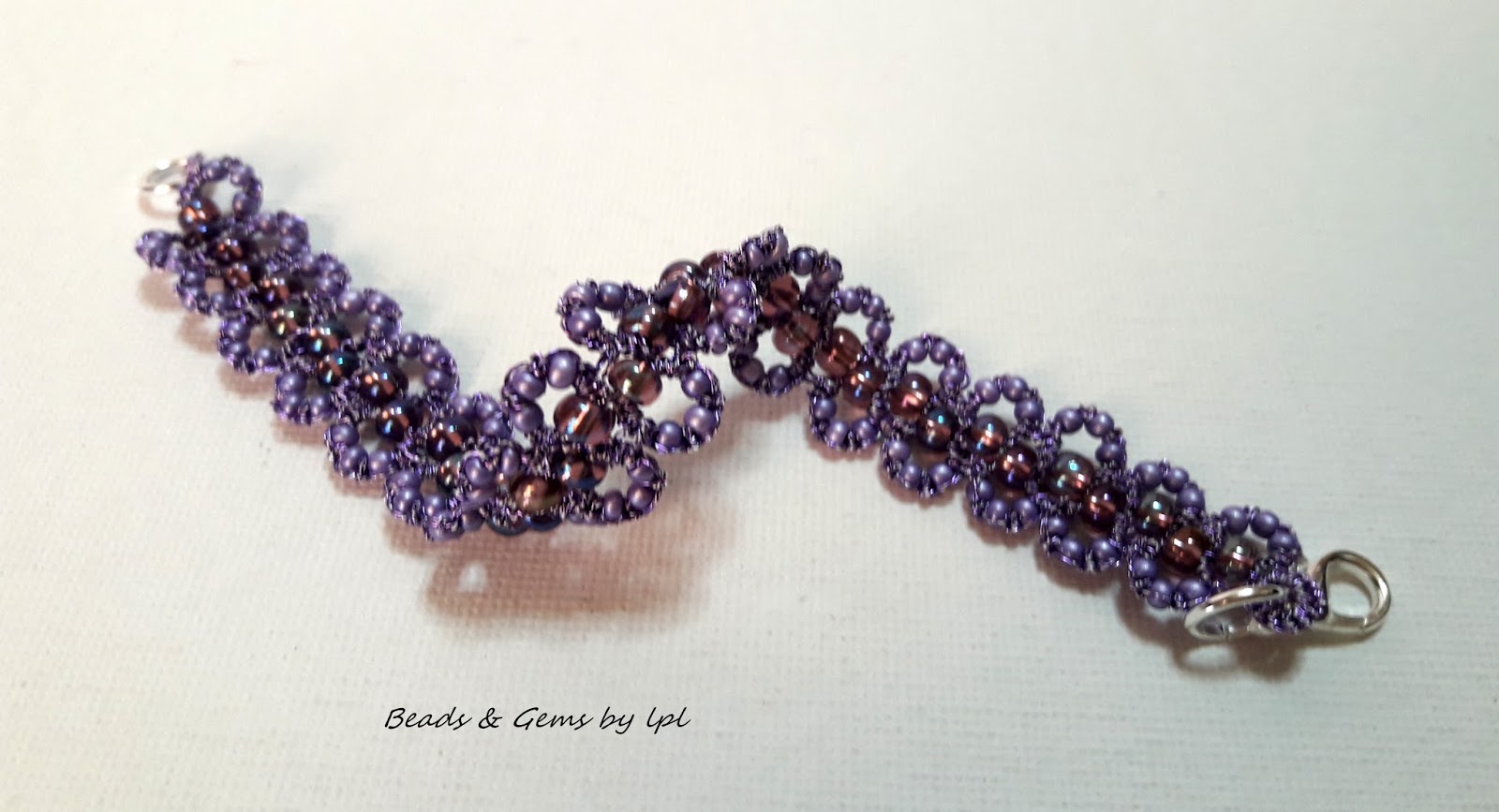 Handmade bracelet - The purple winter flower - tatted lace - metallic thread , 6mm & 9/o seed beads.