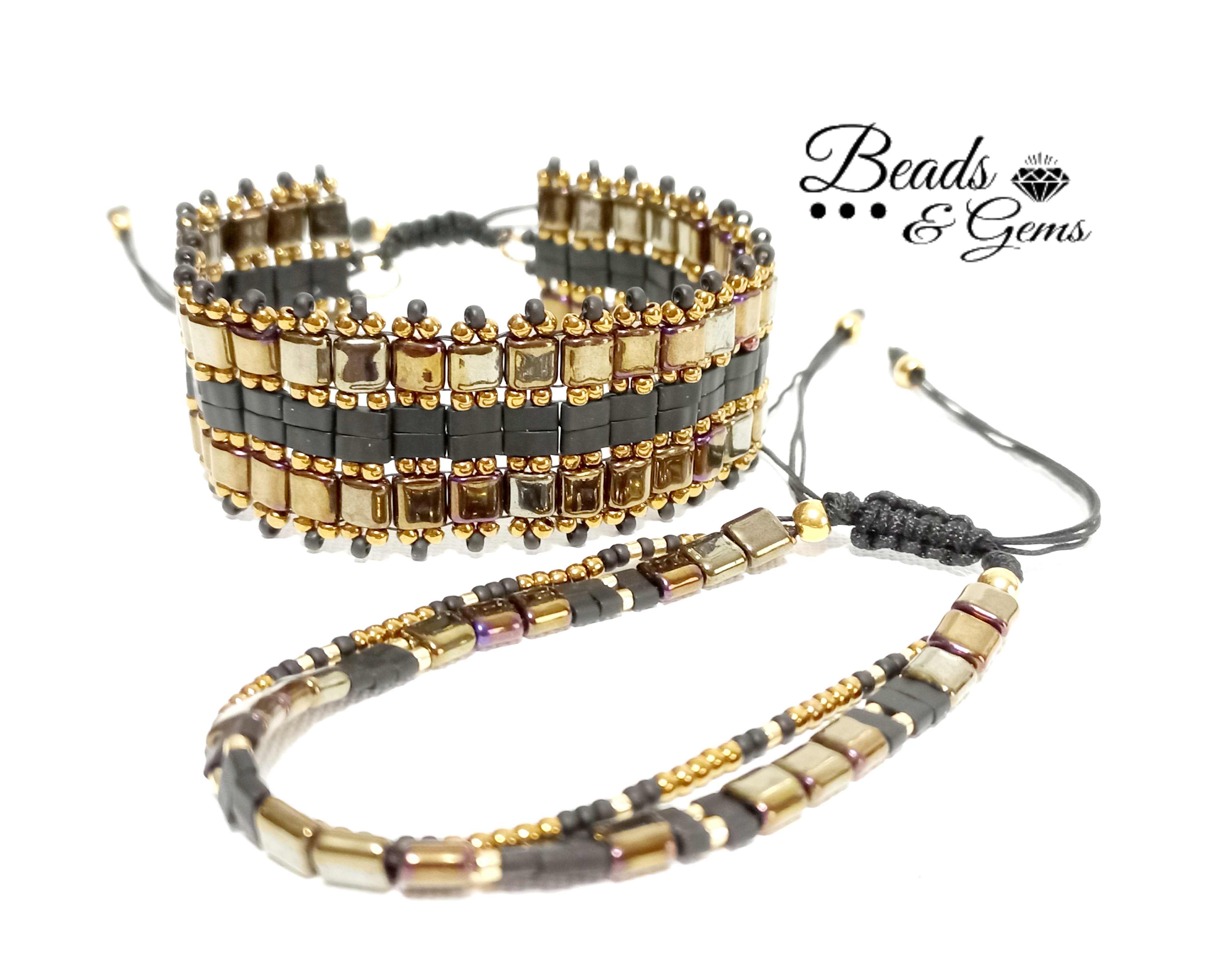 Handmade beaded bracelets with macrame closure - 2pcs set - karo beads , half tila and quarter tila beads , 11/o delica beads , 11/o seed beads , 1.00 nylon macrame cord.