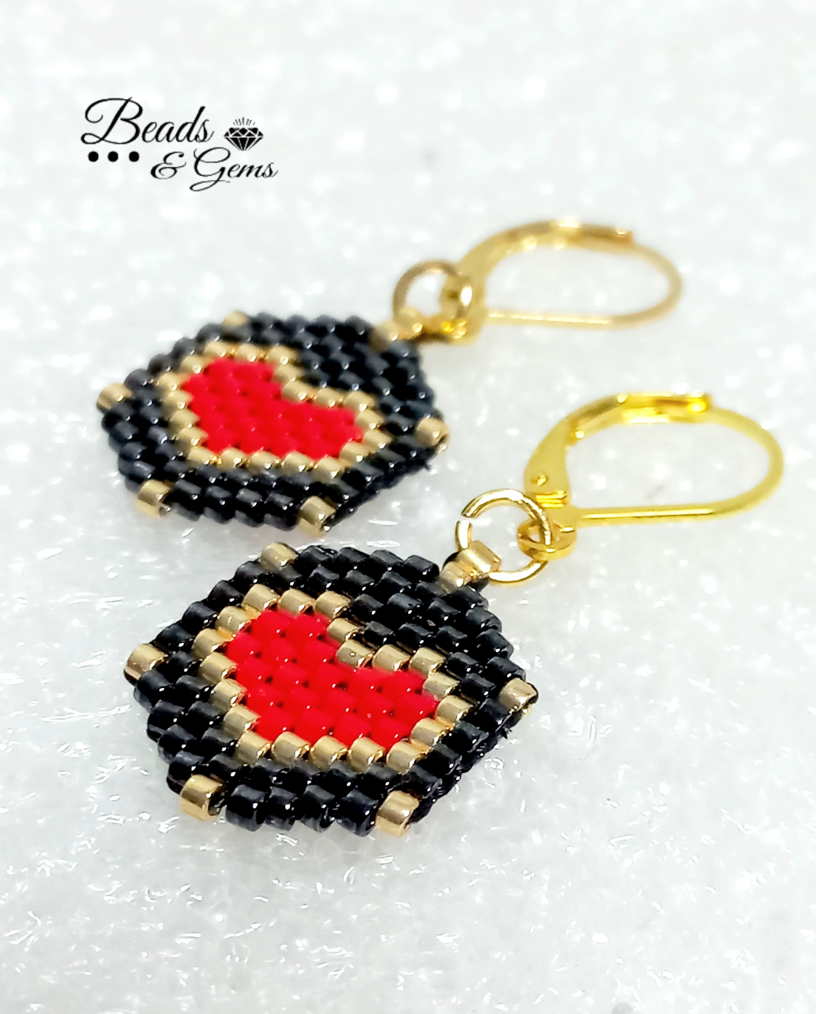 Handmade beaded earrings - Valentine Heart - 11/0 miyuki delica seed beads.